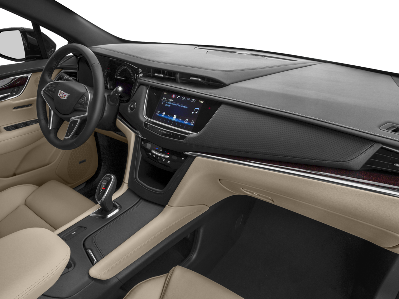 - Cadillac user experience with embedded navigation, AM/FM stereo with 8" diagonal color information display, four USB ports, two auxiliary power outlets, auxiliary input jack, Natural Voice Recognition and Phone Integration for Apple CarPlay and Android Auto capability for compatible phone