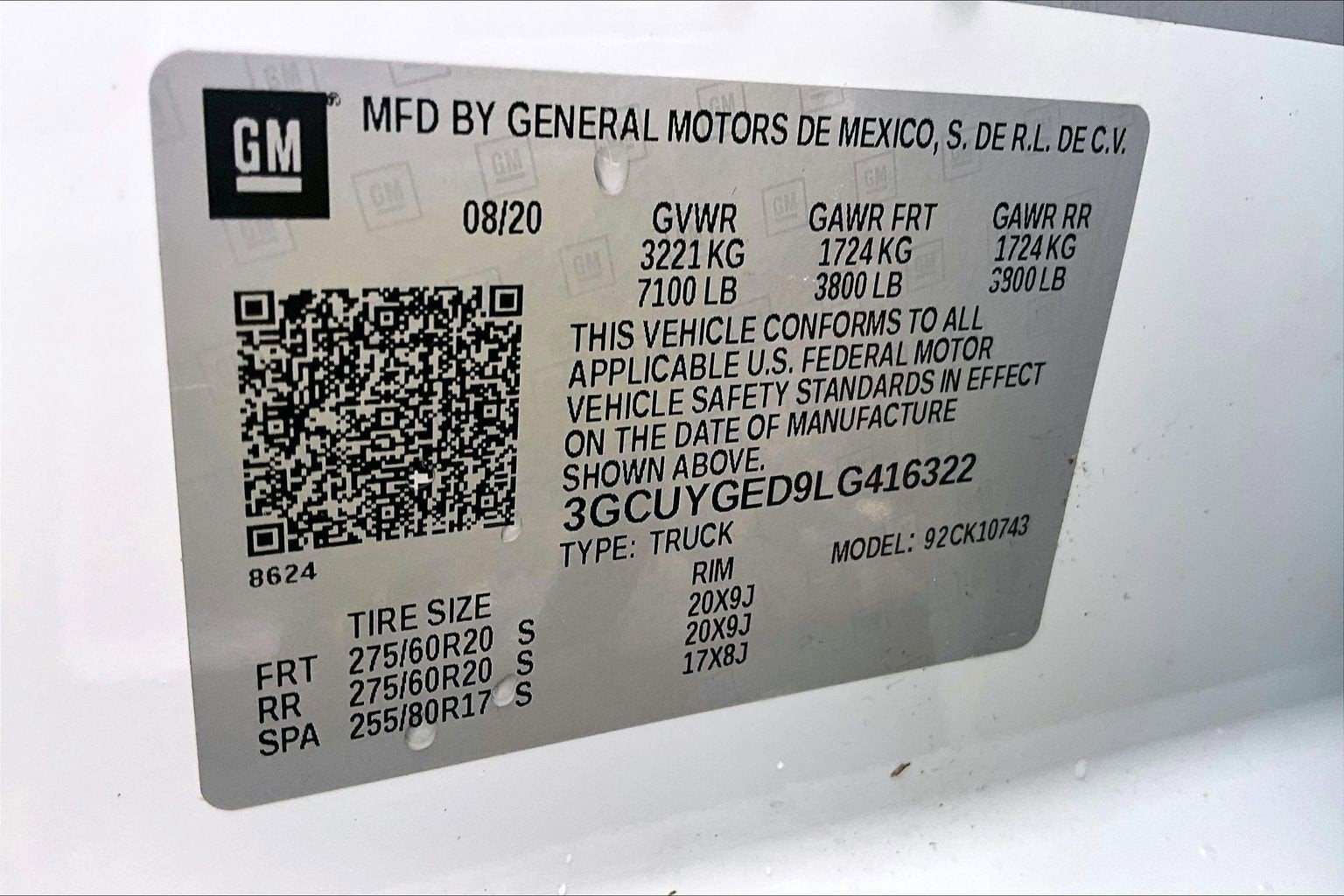 - Front Tire Size: 275/60R20SL